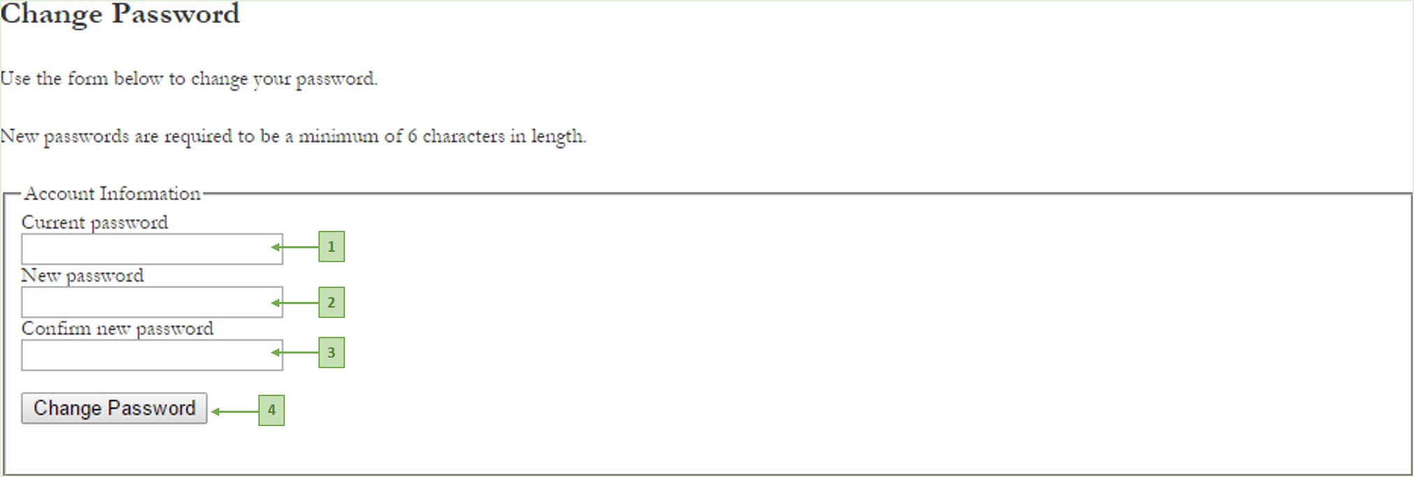 When you log in with the initial password (password1), MERMS prompts you to change it, on the Change Password page, as displayed in the image below;